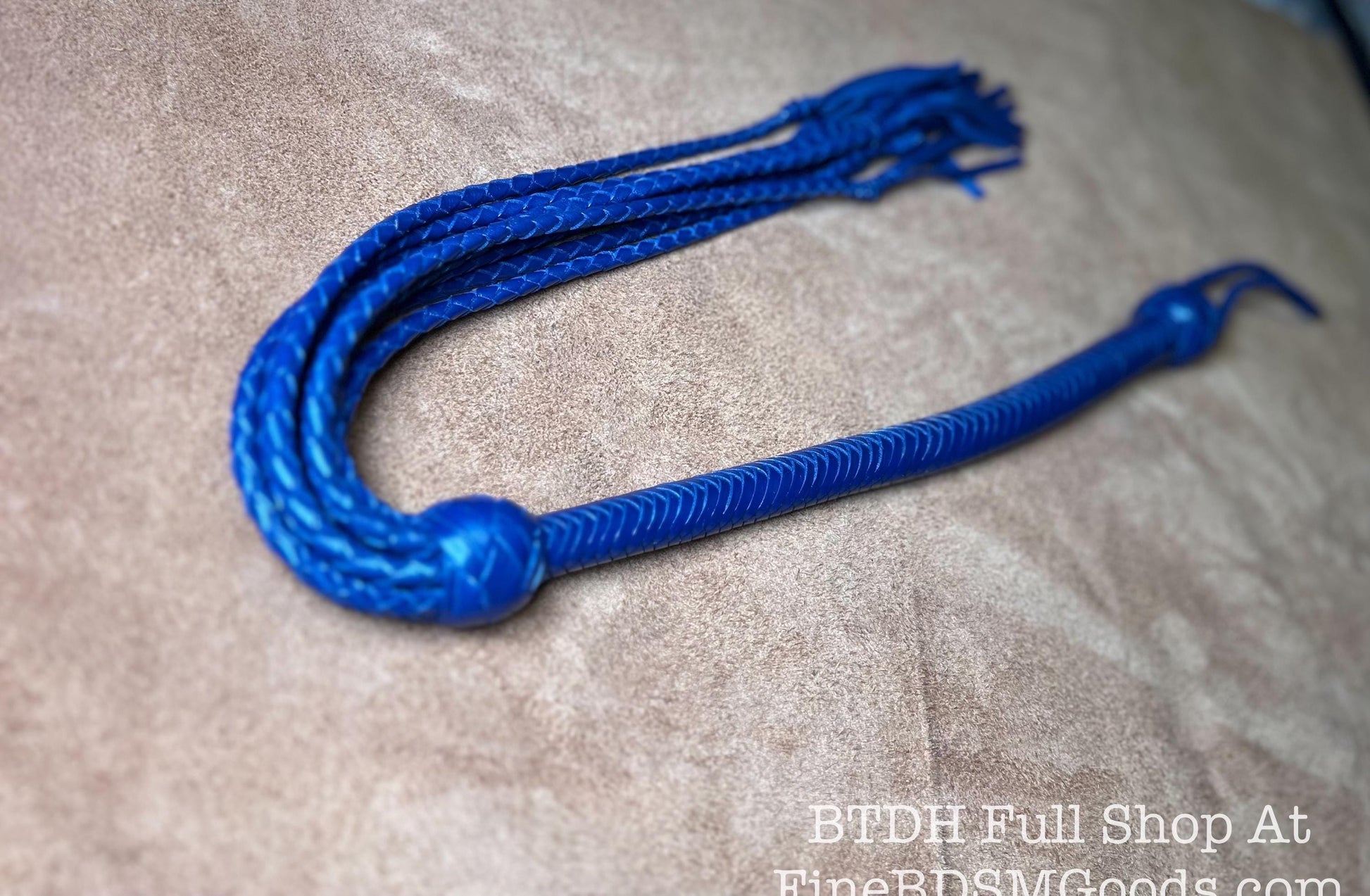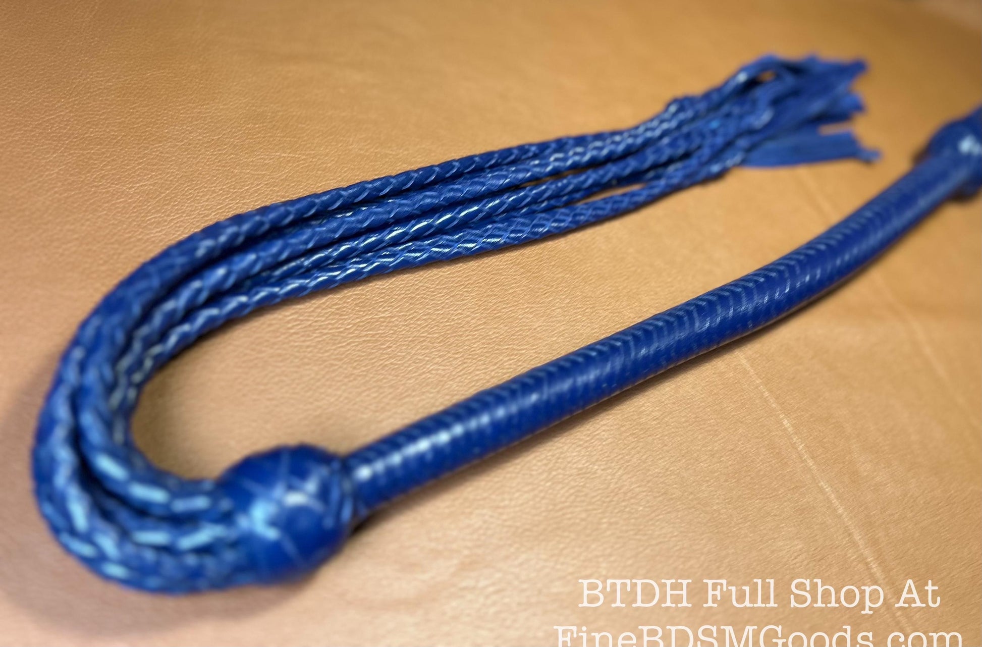 The whip is a full grain (best) Sara leather in their Midnight Blue color.