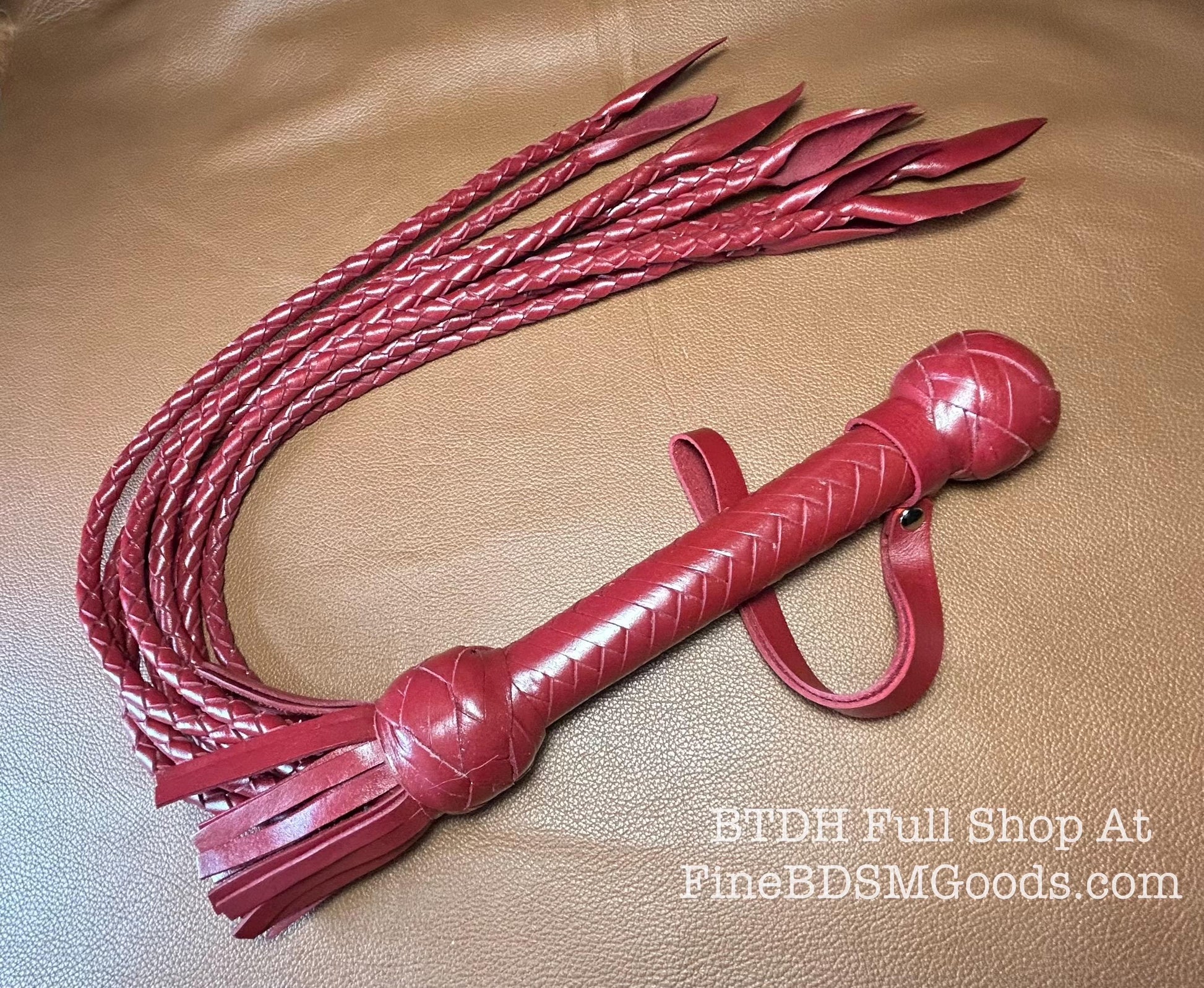The whip is a full grain (best) Sara leather in their Aztec Red color.