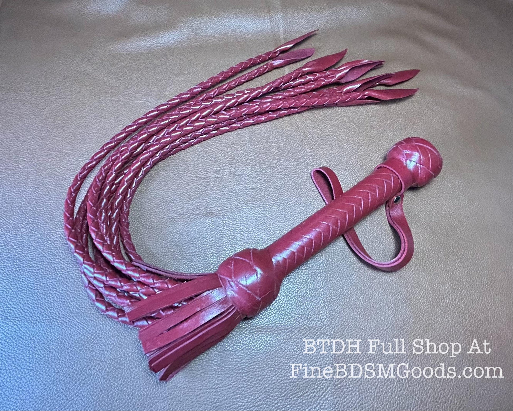 Cat Of Nine Tails Short Handle Aztec Red Lush Rich Color Leather 30 Inches Cat O Nine Tails