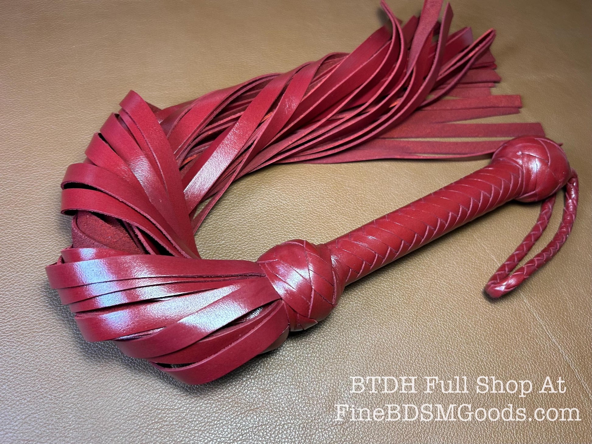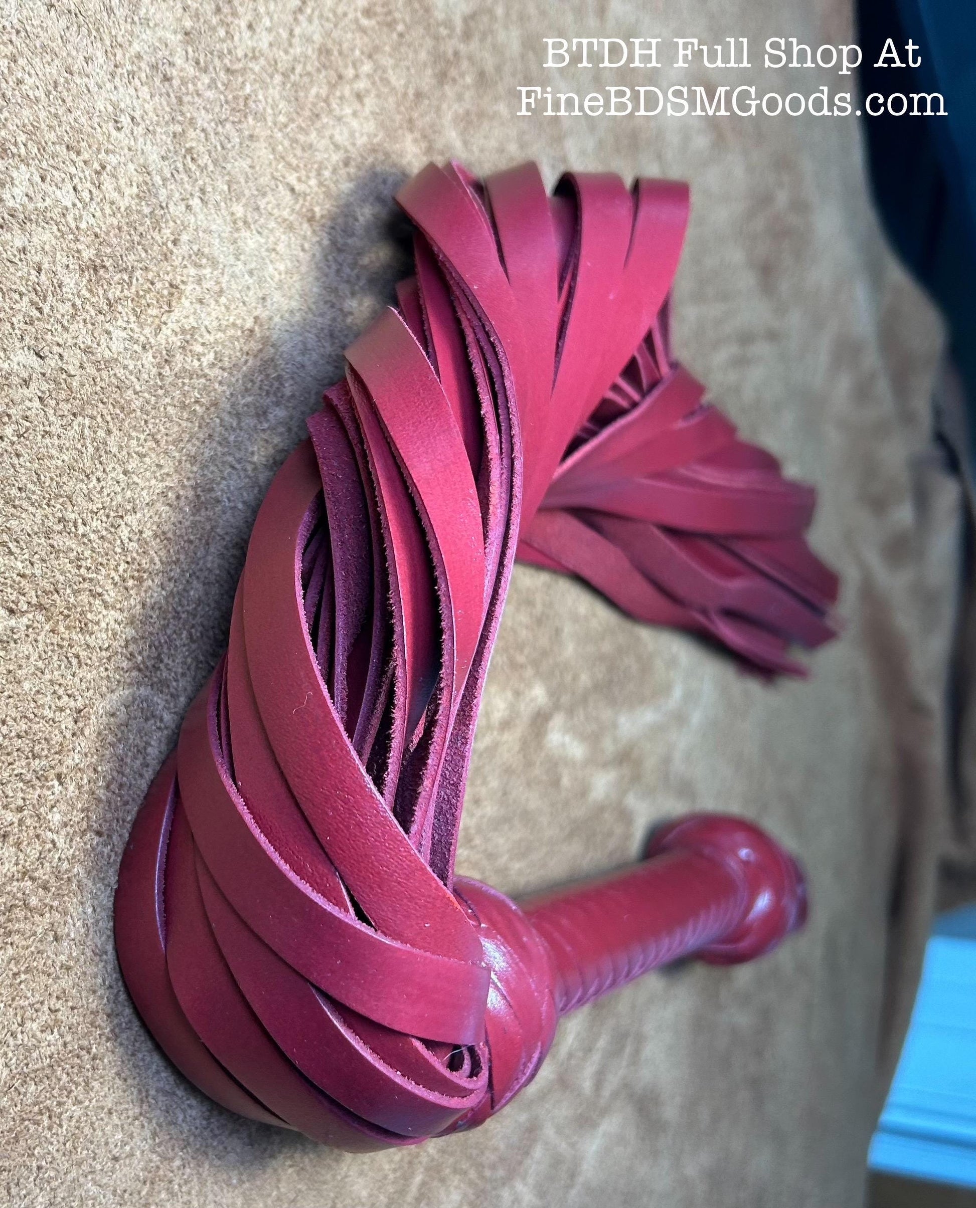 Classic Short Handle Flogger Aztec Red Lush Leather Elegant Timeless Luxury 29 Inches