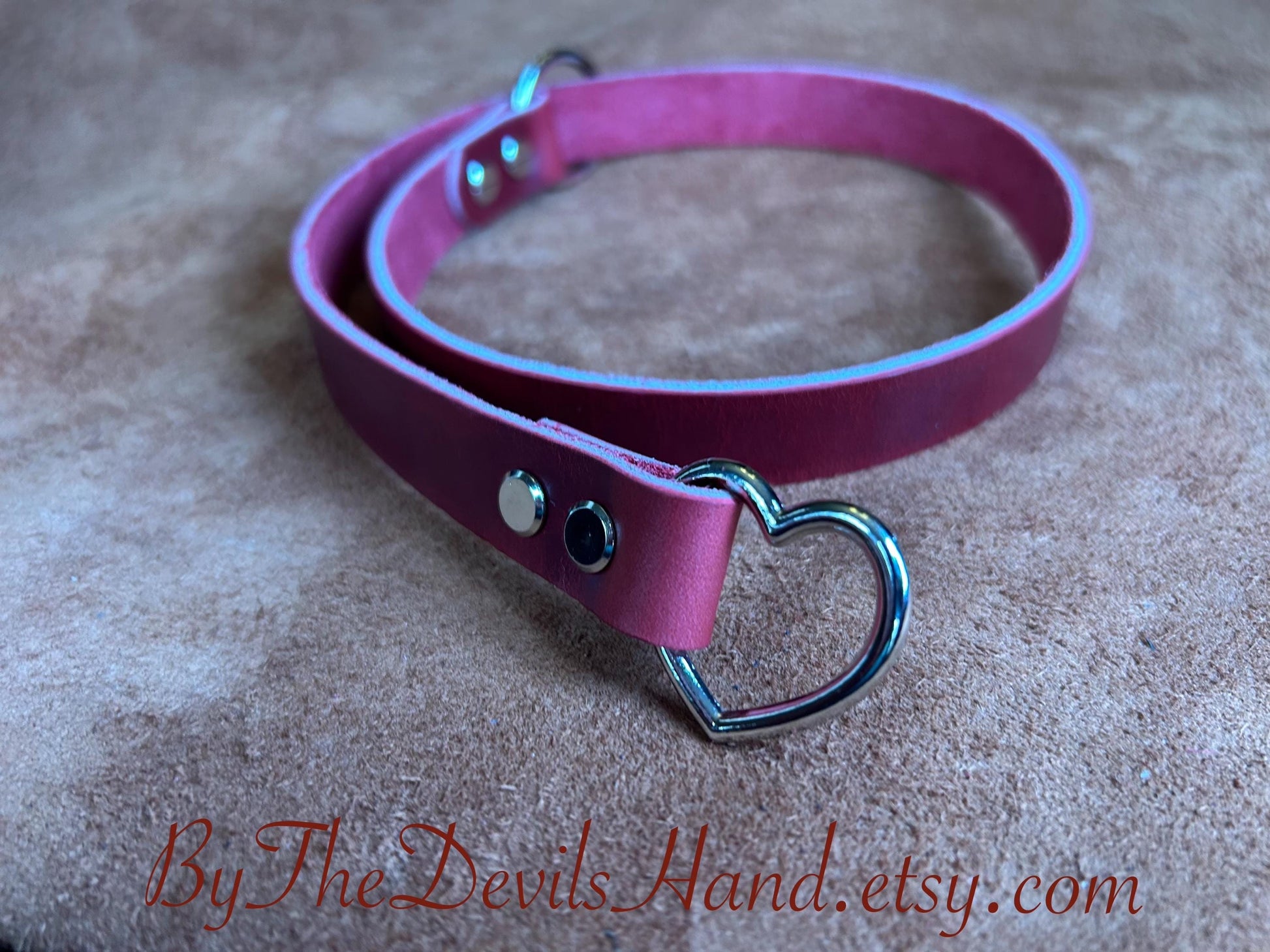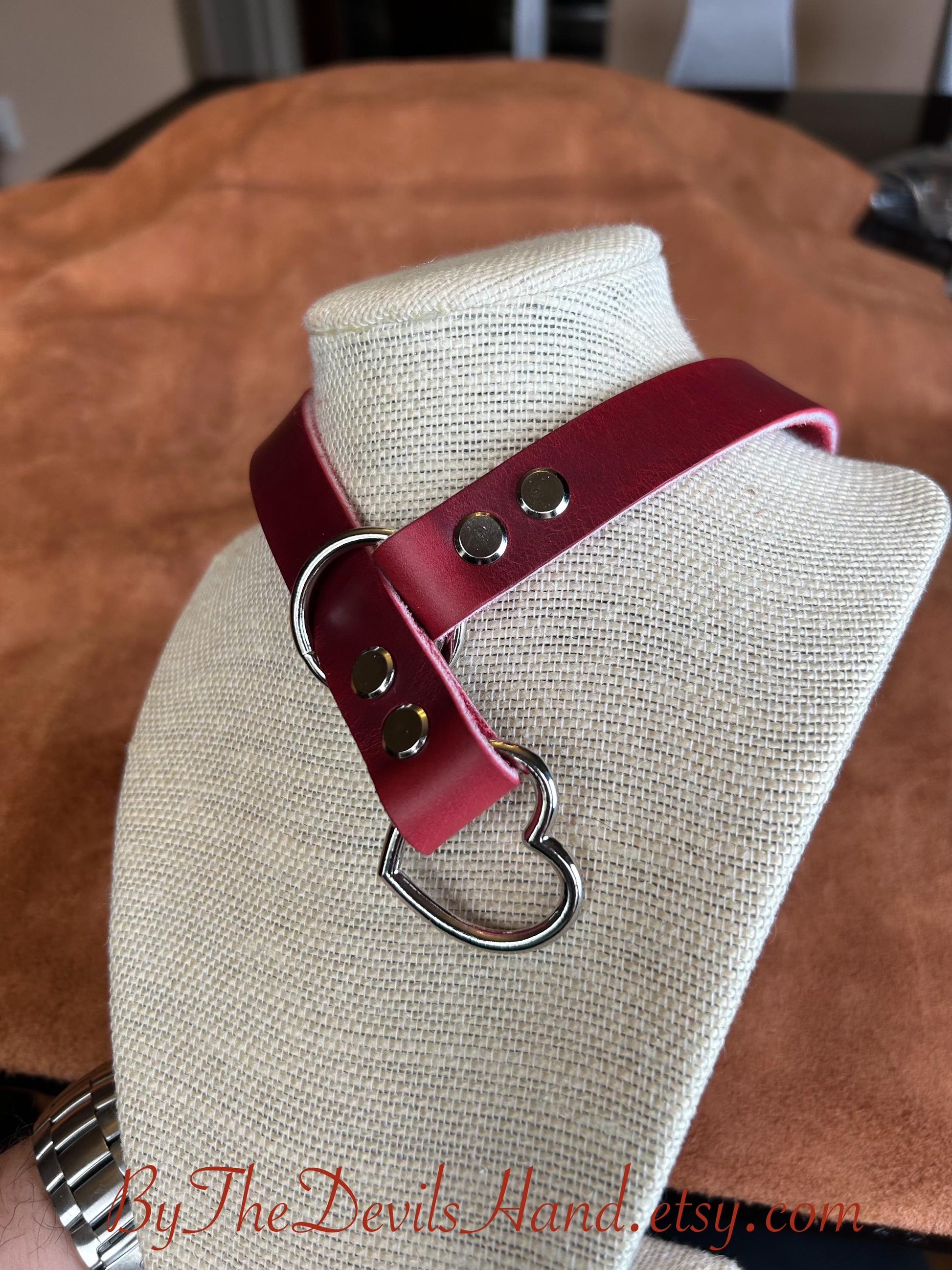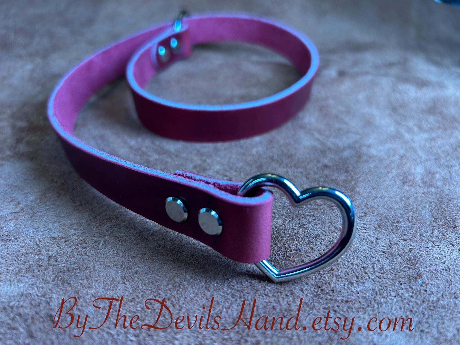 Heart O Ring Leather Slip Collar with Matching Leash - Many Colors - Vegan Options