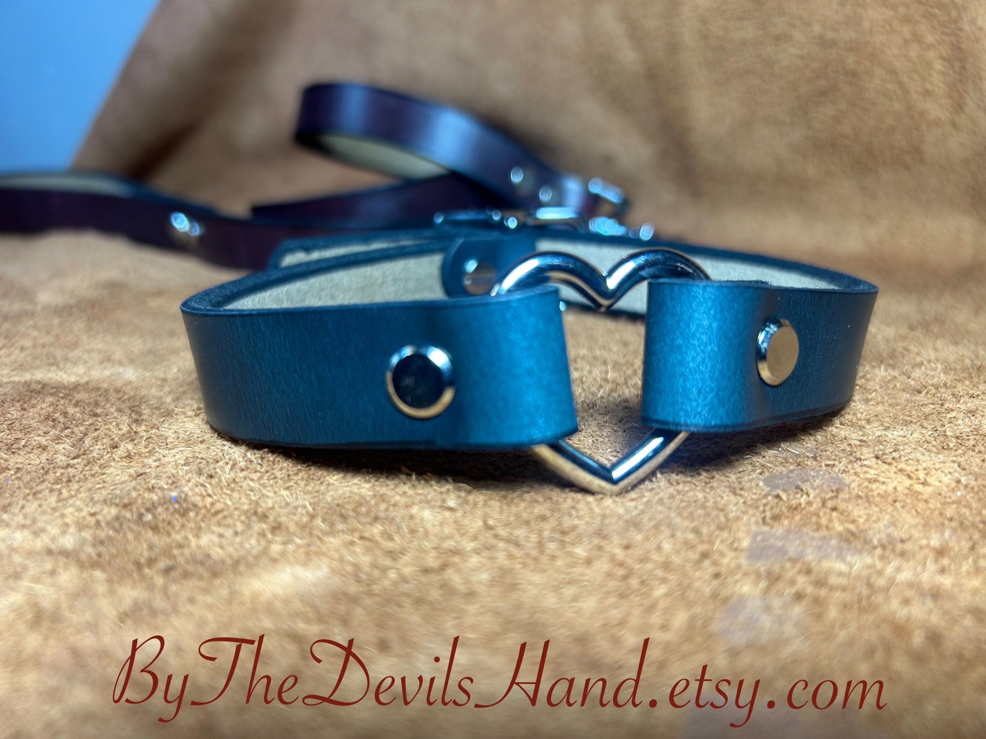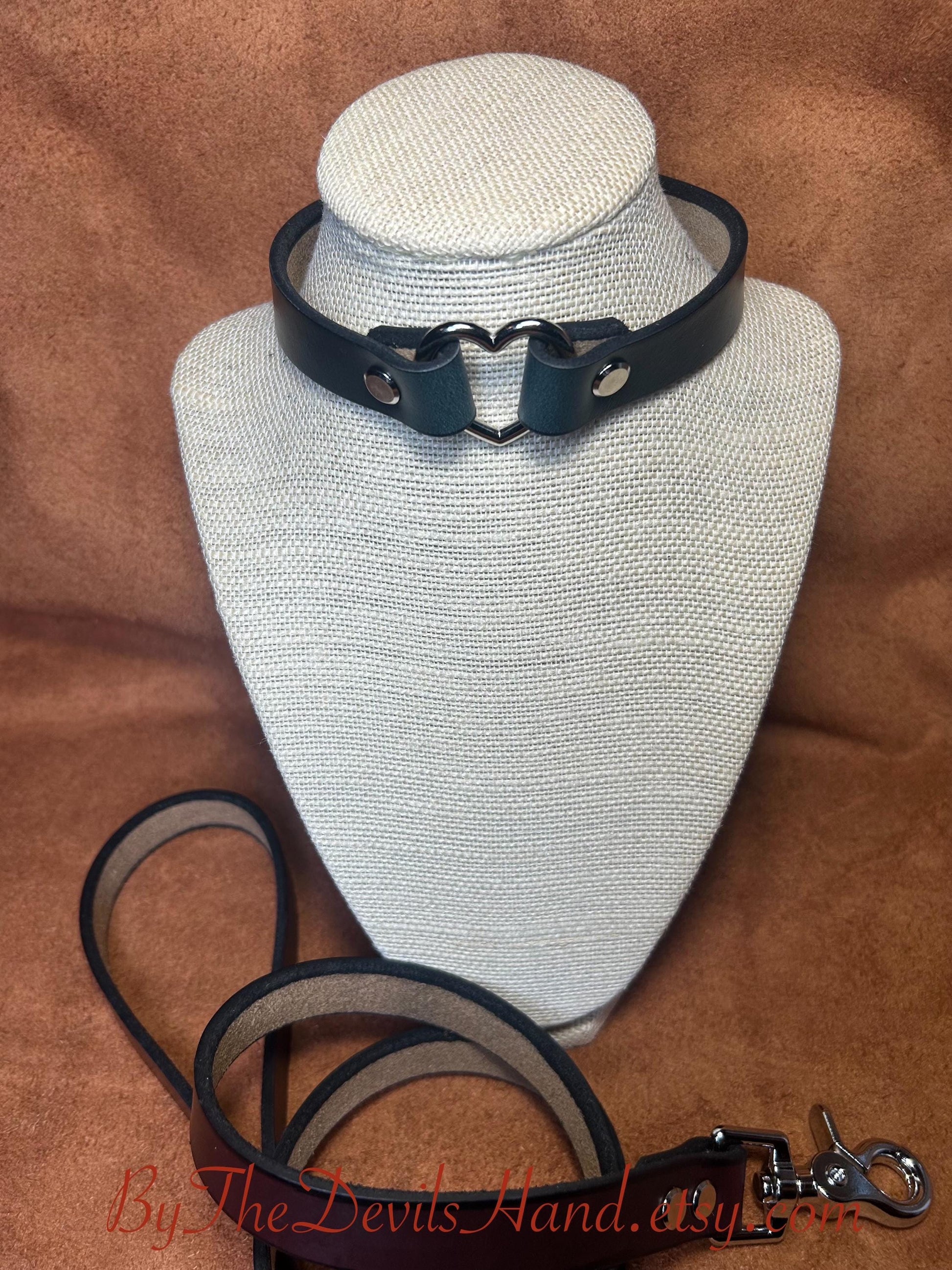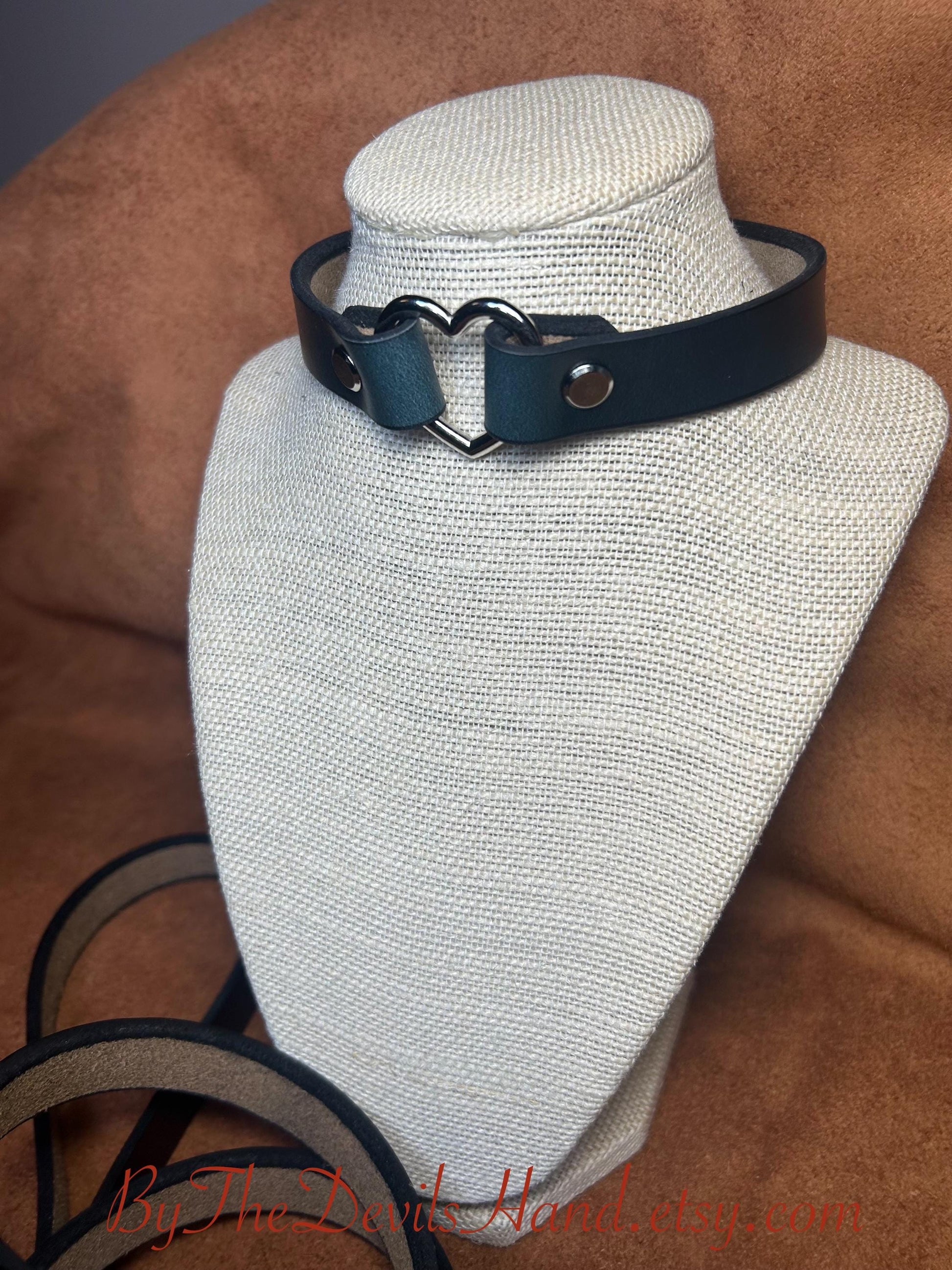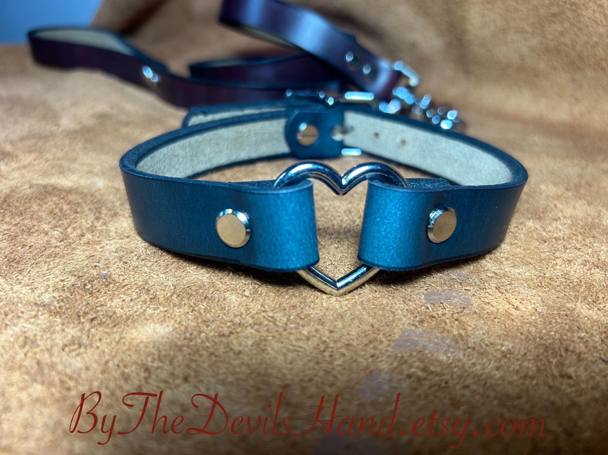 Heart Shaped O Ring Choker and Leash - Available in a full range of colors and leather options