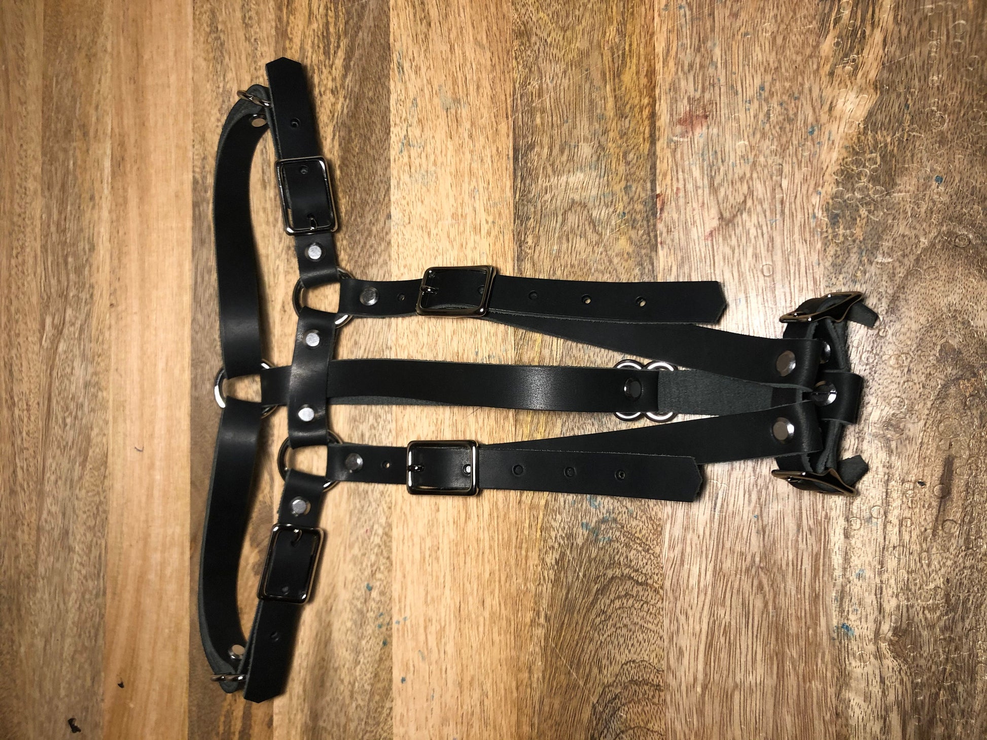Designed with both function and aesthetics in mind, the harness includes adjustable buckles, many of which are backed with slides to hide any slack, making it especially suitable for more petite wearers. This ensures a smooth, flawless fit for a wide range of body types. The craftsmanship is impeccable, and the design is the most functional harness I’ve seen anywhere—this is my original creation, and it’s built to last.