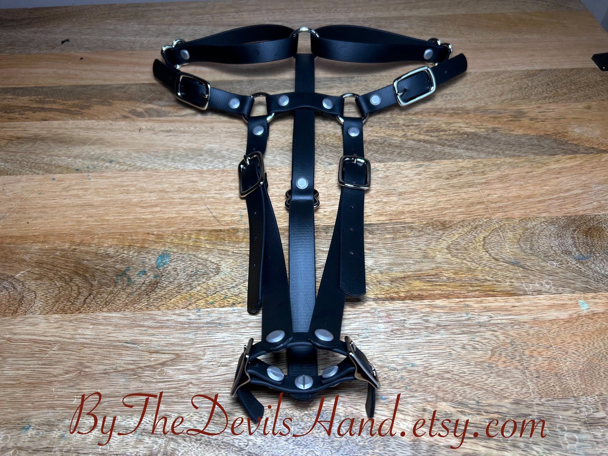 Designed for both Function and Beauty, the harness features adjustable buckles, many of which are backed with slides to manage slack for petite wearers. This ensures a flawless fit across a wide range of body types. The work is impeccable, the design is incredibly functional, and it’s built to last. This is my original design, and I believe it’s the most functional harness available anywhere.