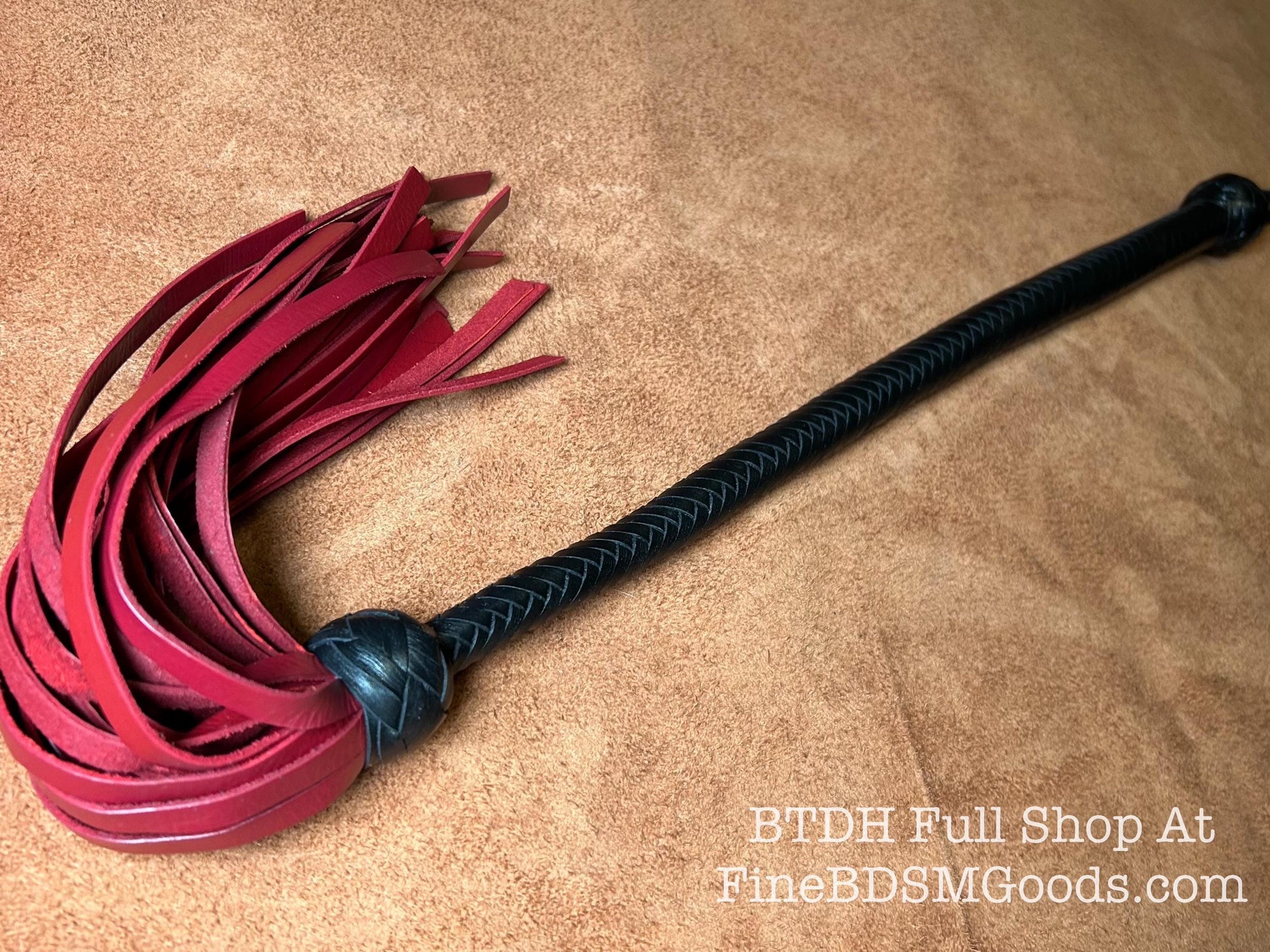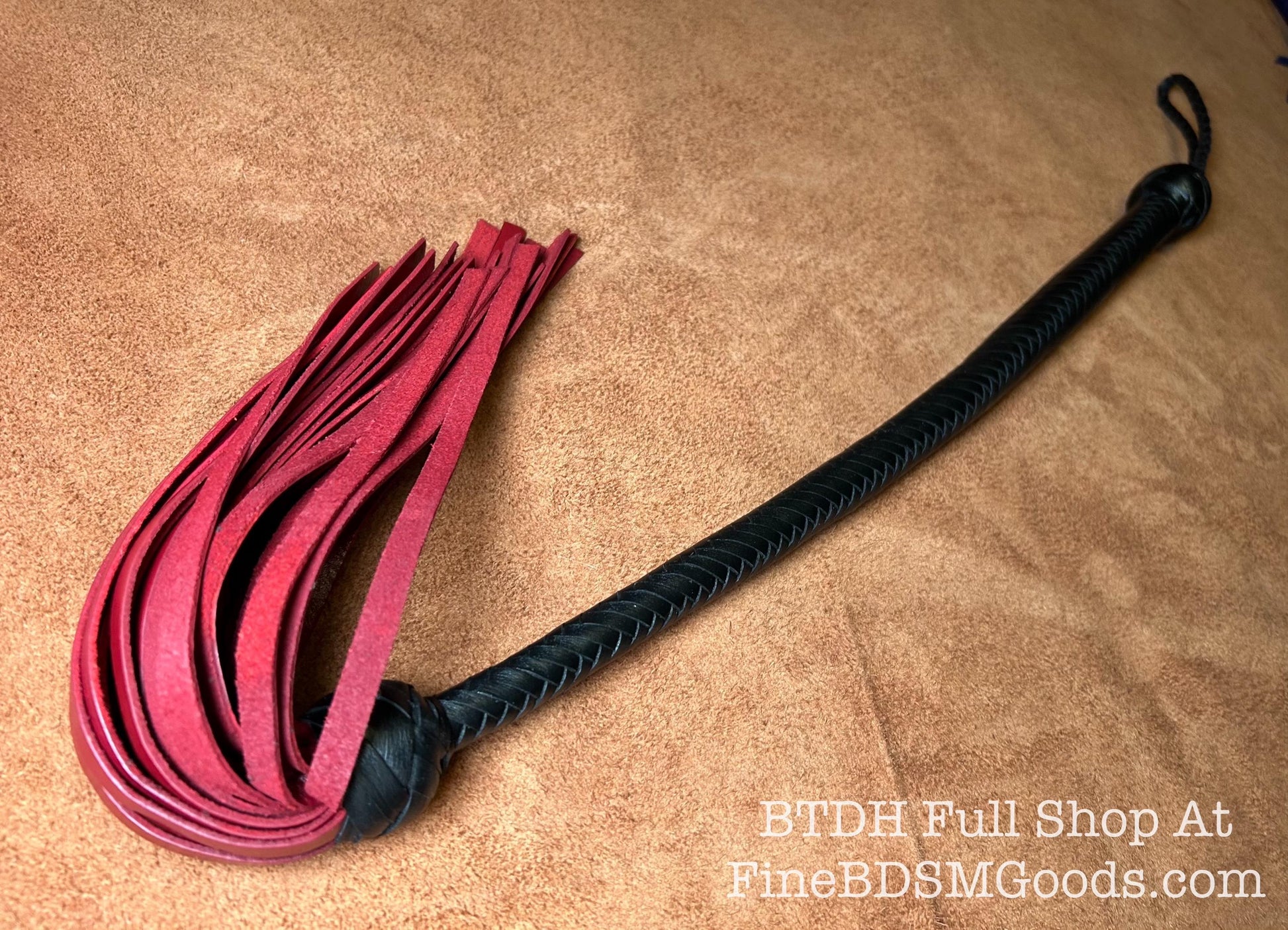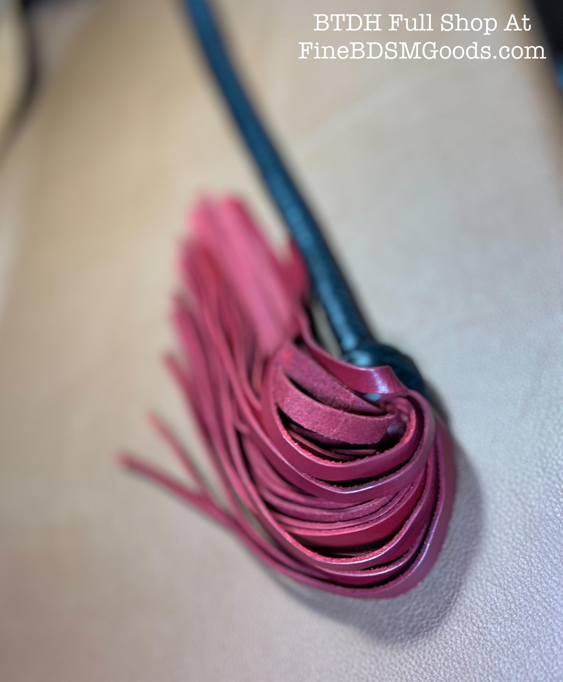 Lollipop Flogger - Two Color Long Handle Black Satin Aztec Red - Lush Rich Color Leather - 34 Inches