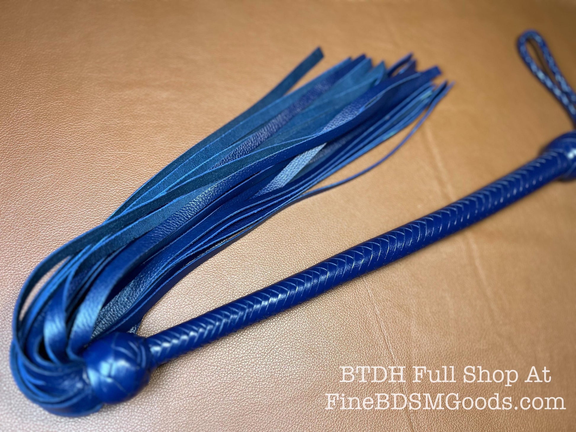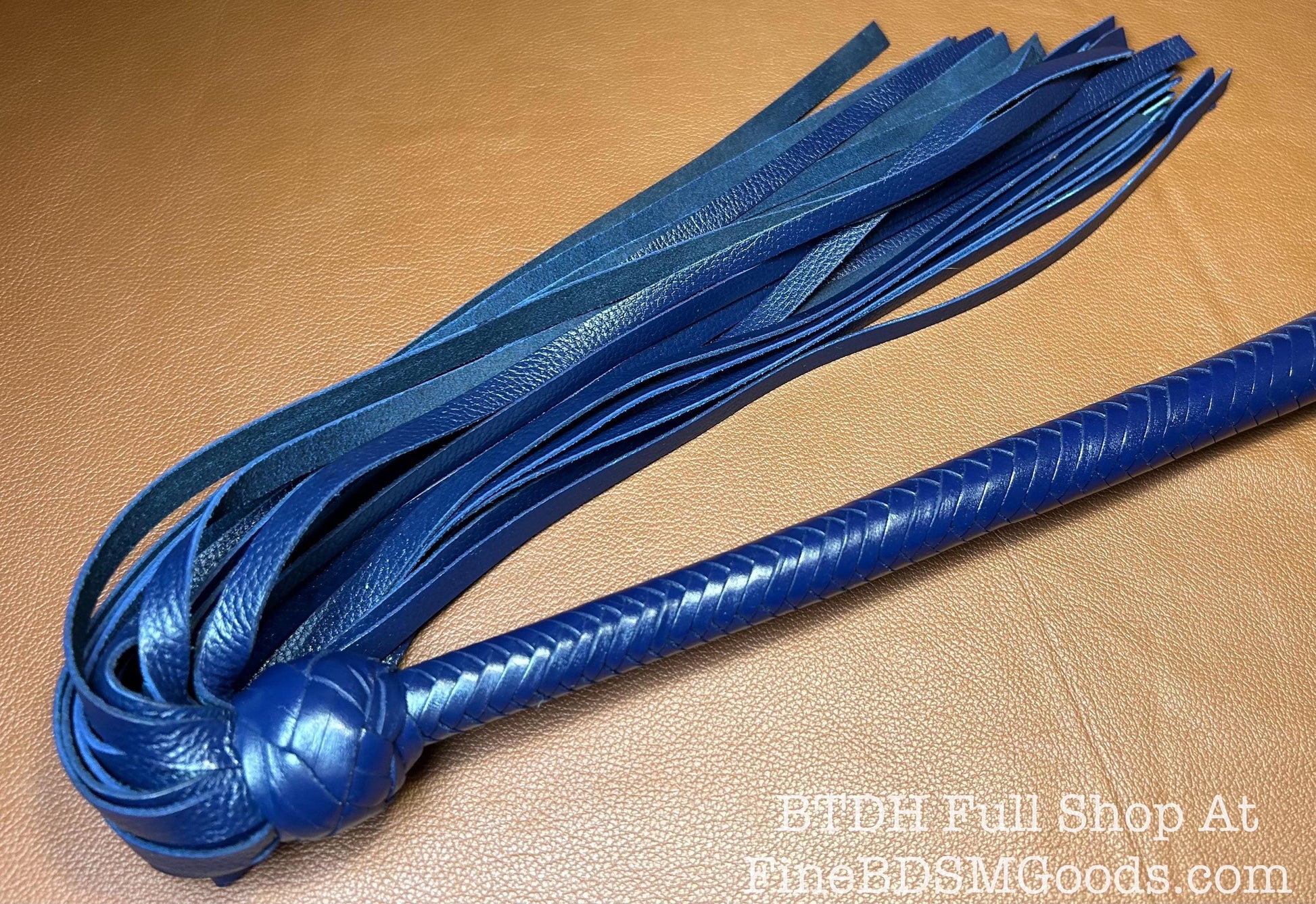 The Opus Flogger Long Handle Long Falls Midnight Blue Lush Rich Color Leather 34 Inches