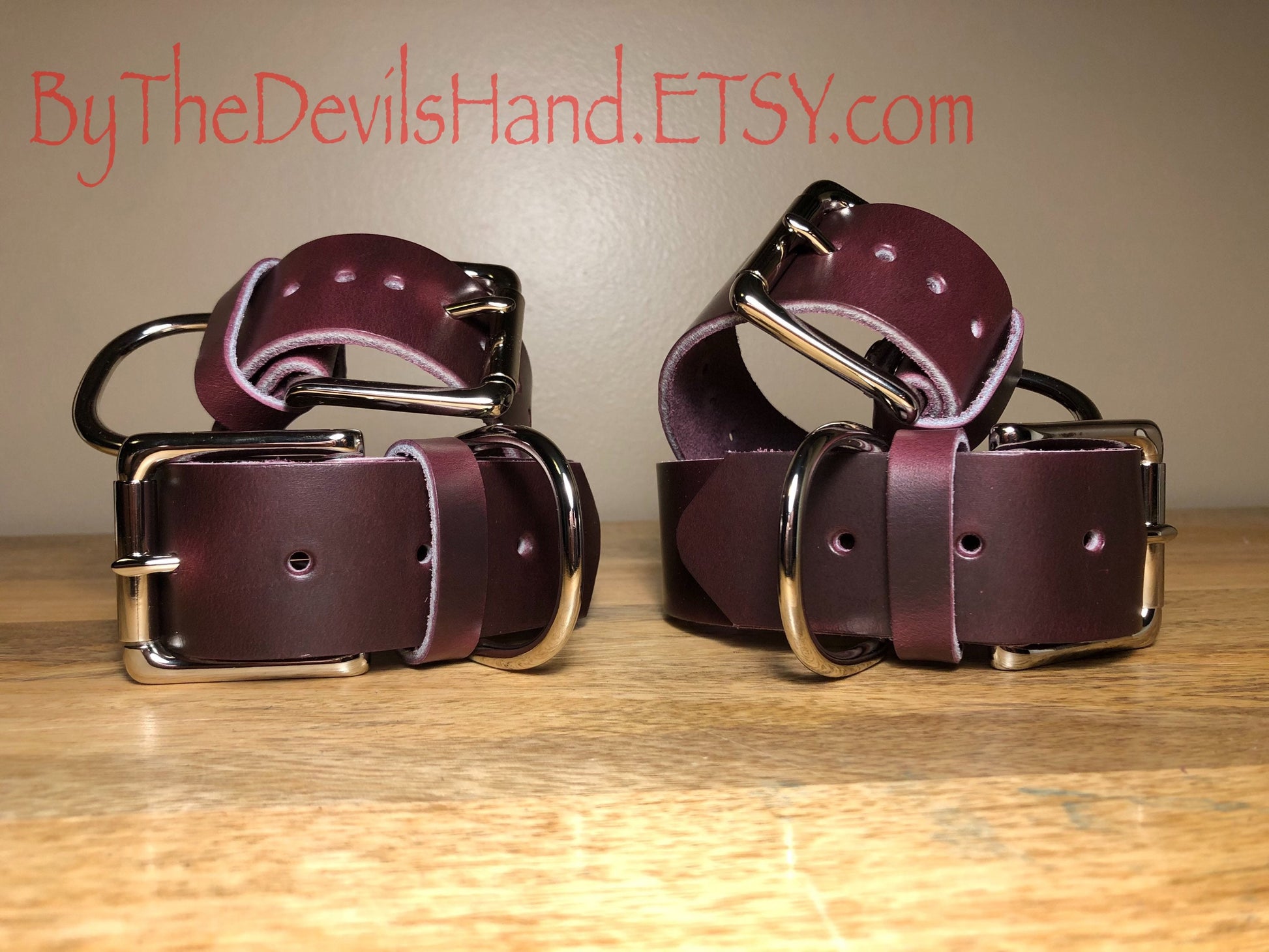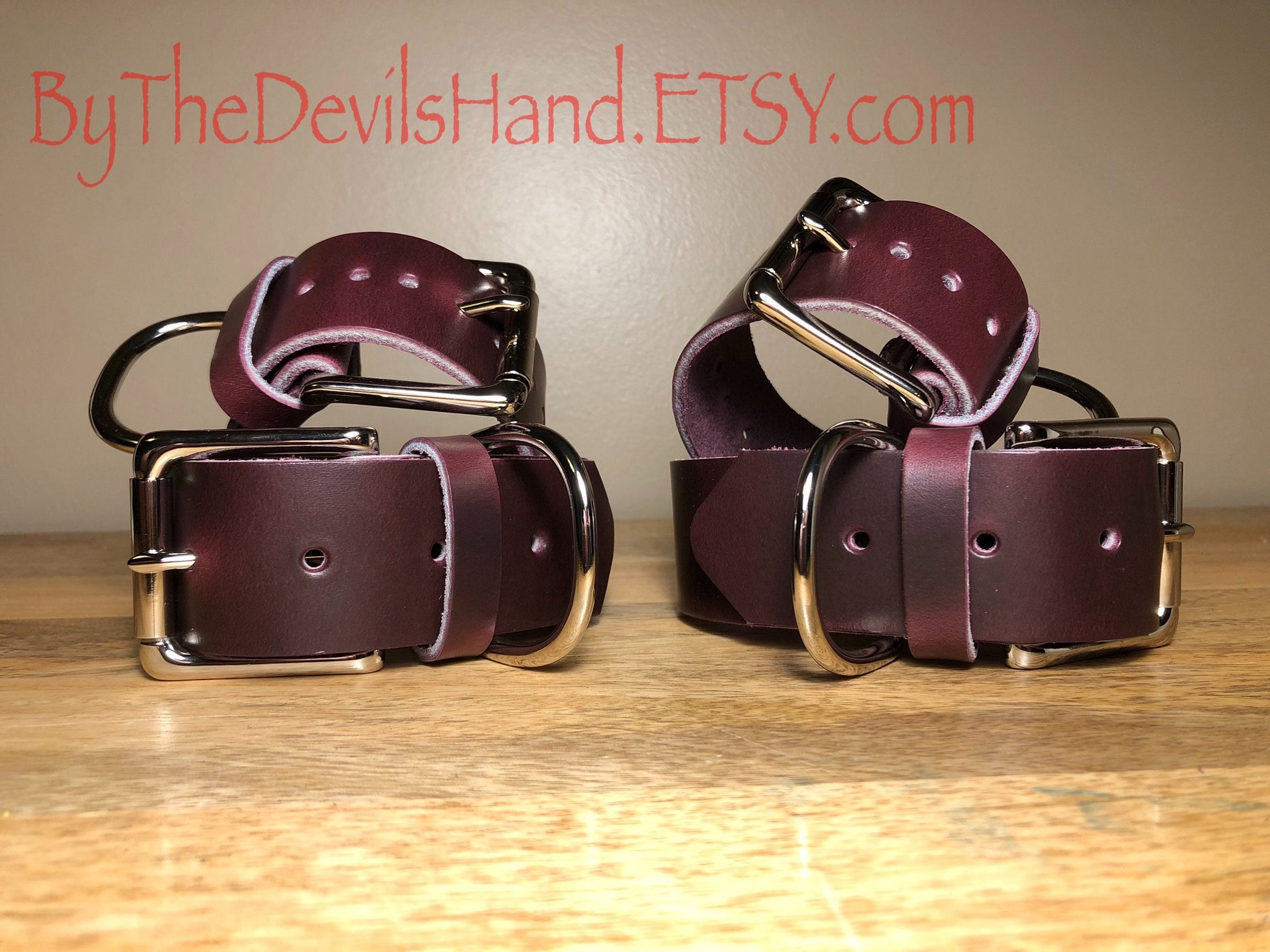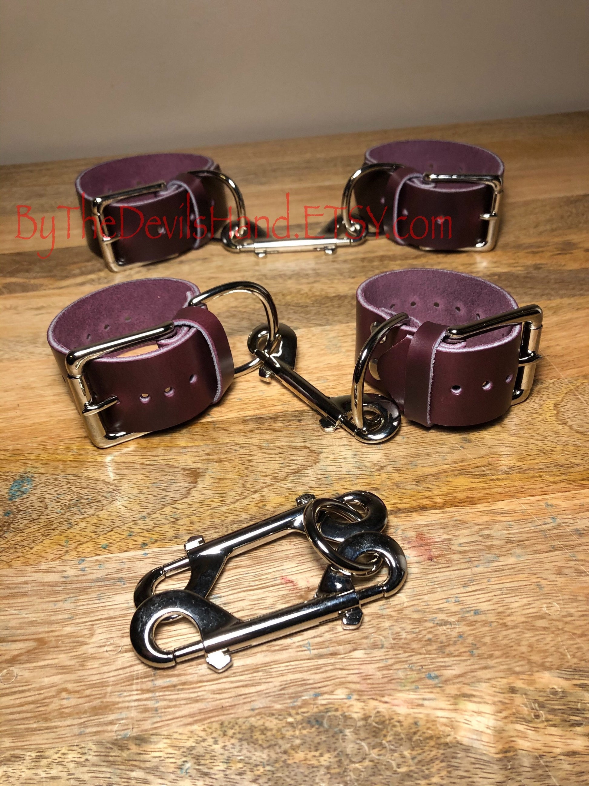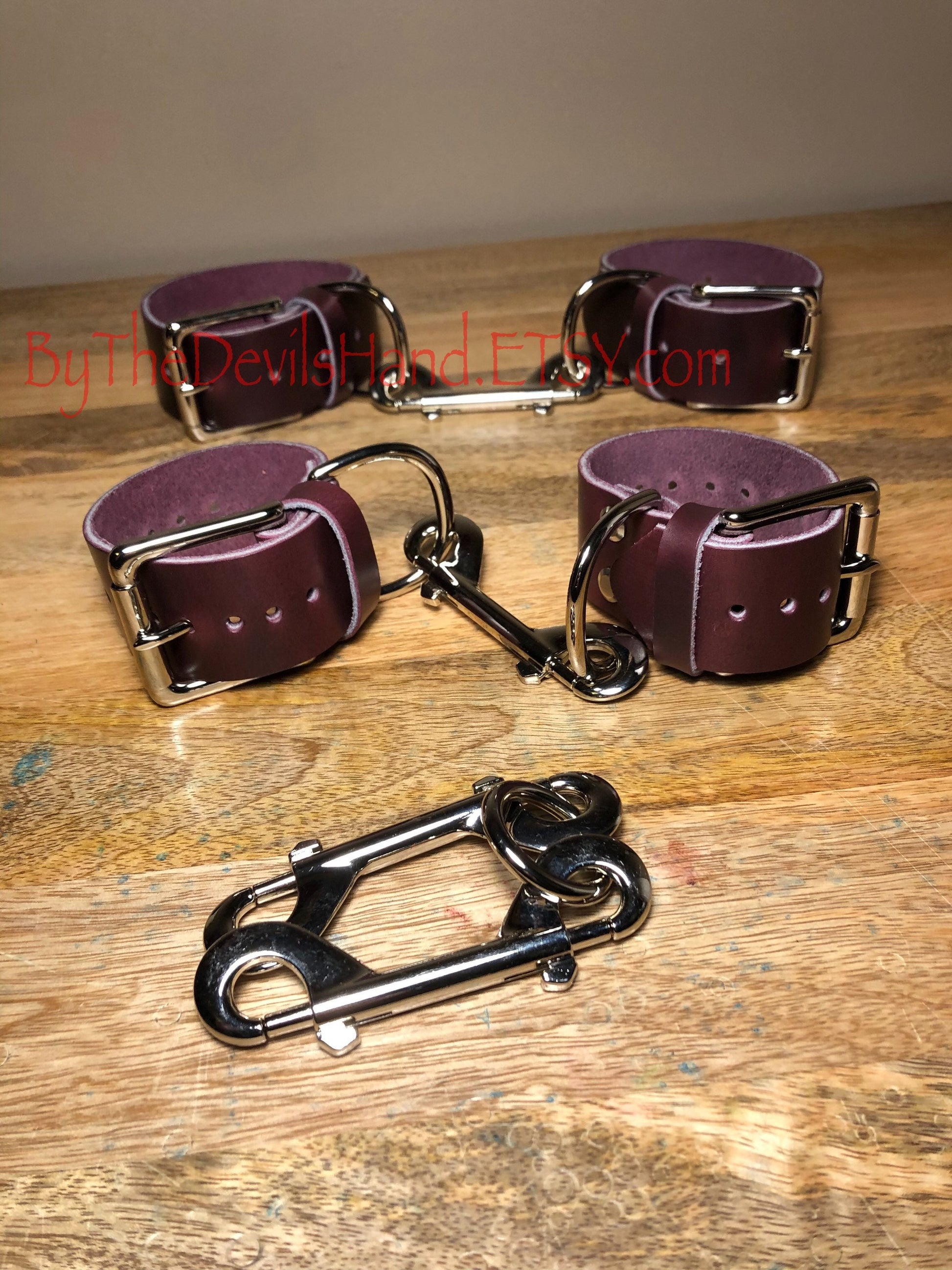 Wrist And Ankle Restraint Set - Handmade Cavalier Plum Purple Leather Straps (CPP-BE)